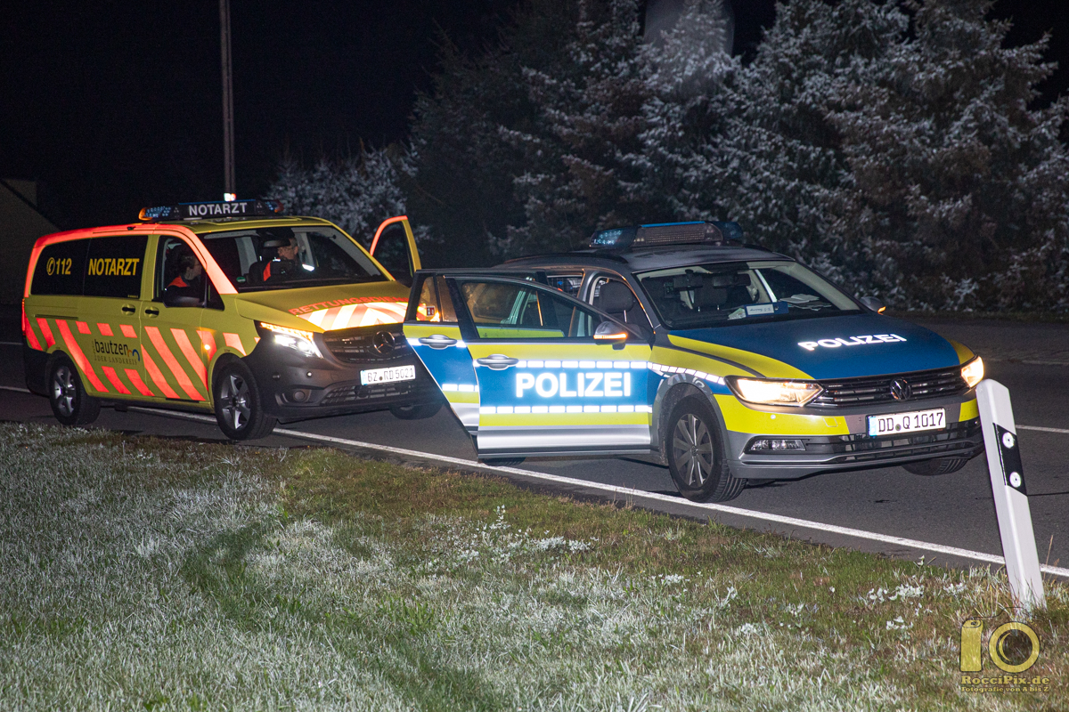 Putzkau: Glück im Unglück hatte der Fahrer eines Motorrades in der Nacht in Putzkau. Kurz nach 3:00 Uhr krachte er fast ungebremst in das Heck eines abbiegenden PKW, flog über die B98 und landete in einem Straßengraben. Fast unverletzt wurde der noch junge Motorradfahrer vom Rettungsdienst untersucht. Die Kameraden der Freiwilligen Feuerwehr aus Putzkau und Schmölln banden auslaufende Betriebsstoffe und räumten die Straße frei. Der Motorradfahrer weigerte sich vor Ort einen Atemalkoholtest abzugeben und musste mit den Beamten der Polizei in ein Krankenhaus. Ein genauer Promillewert ist zunächst noch unbekannt.