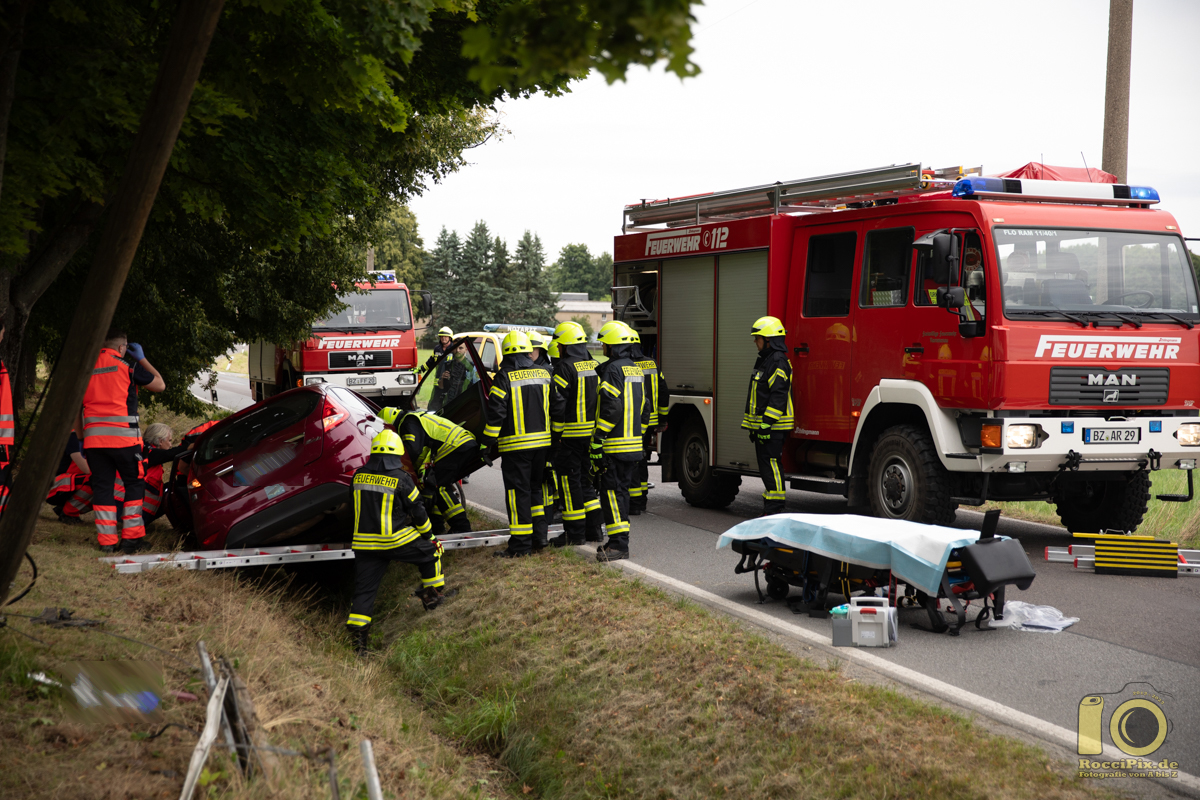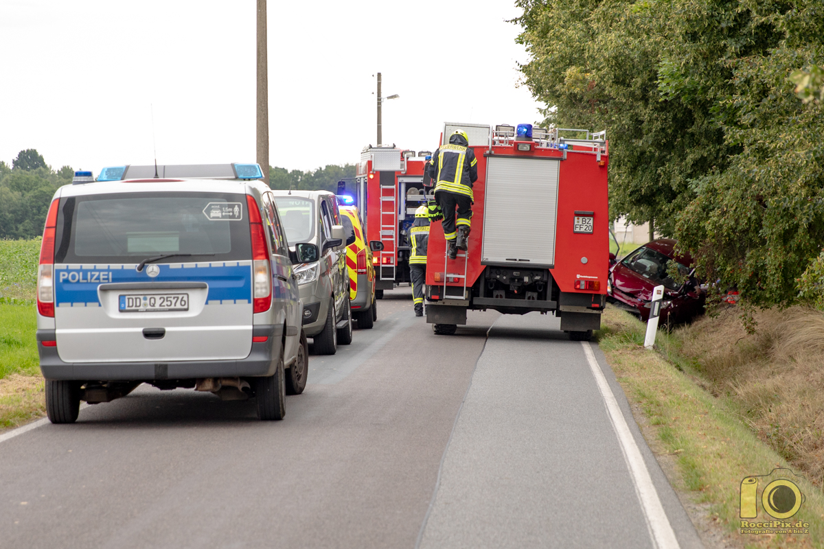 Rammenau: Kurz vor 16:00 Uhr kam es am Freitag Nachmittag in Rammenau zu einem Verkehrsunfall. Auf der Niederdorfstraße kam aus noch ungeklärter Ursache der Fahrer eines Ford Fiesta von der Straße ab und prallte frontal gegen einen Telefonmasten. Mit der Unterstützung der Freiwilligen Feuerwehr Rammenau konnte der Fahrer patientengerecht aus seinem Fahrzeug geholt werden. Er kam mit schwereren Verletzungen in ein Krankenhaus. Warum der Ford-Fahrer von der Straße abkam, ist noch unklar und wird nun von der Polizei ermittelt. Auch die Unfallforschung der TU Dresden war vor Ort. Die Niederdorfstraße war während des Einsatzes für etwa 1 1/2 Stunden voll gesperrt.