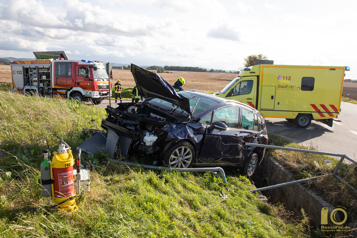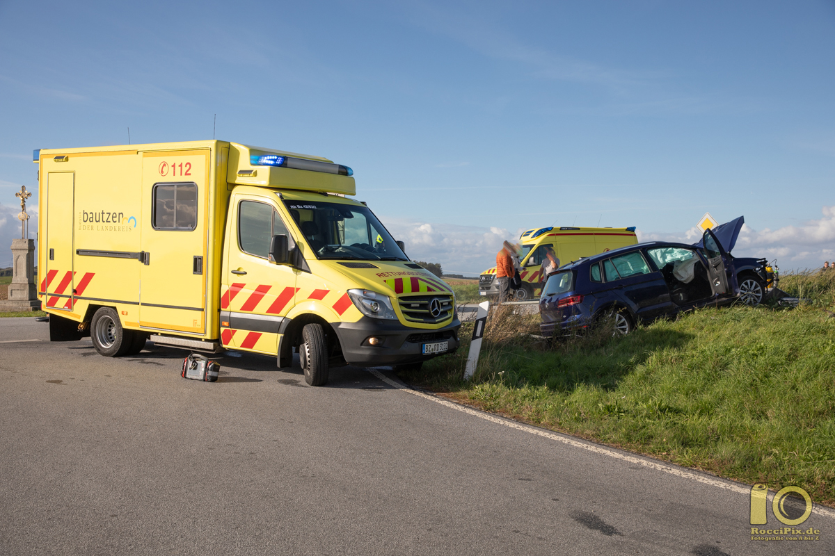 Storcha: Gegen 15:15 Uhr kam es am Sonntag Nachmittag bei Storcha (Gemeinde Göda) zu einem schweren Verkehrsunfall. Als die Fahrerin eines roten VW von Prautitz in Richtung Storcha unterwegs war, übersah sie an einer Kreuzung einen Vorfahrtsberechtigten blauen VW. Bei dem Zusammenstoß wurde der blaue VW von der Straße geschoben und kollidierte mit einem Schutzgeländer eines Abflusses. Beide Fahrerinnen sowie zwei Personen aus dem roten VW wurden zum Teil schwer verletzt und kamen in umliegende Krankenhäuser. Die Kreuzung von der K7205 und K7279 war für mehr als eine Stunde voll gesperrt. Die Kameraden der Freiwilligen Feuerwehren Prischwitz und Göda sicherten die Unfallstelle ab.